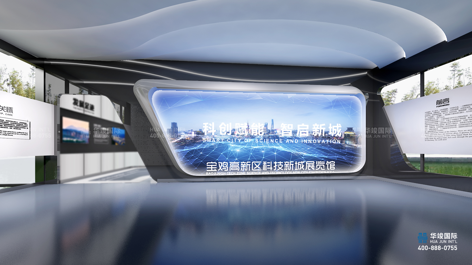 寶雞高新區(qū)城市館展廳設計項目由華竣數(shù)創(chuàng)執(zhí)行整體設計施工。華竣國際以“智慧城市展廳”為起點,結合數(shù)字沙盤、數(shù)字影院、虛擬現(xiàn)實、互動多媒體等技術,打造承載城市歷史、展現(xiàn)城市現(xiàn)在、展望城市未來的智慧規(guī)劃館。