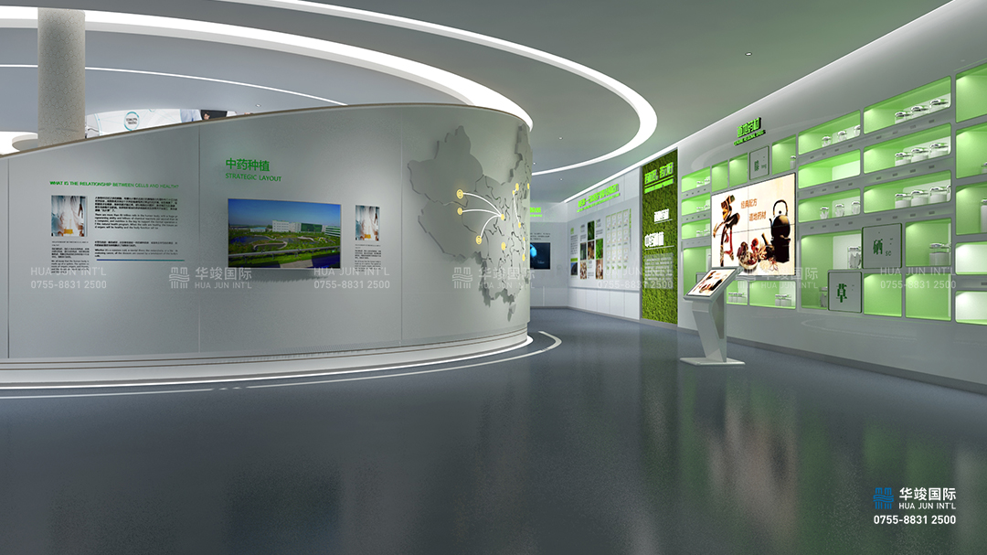 華竣國際為神威藥業量身打造的展館以深厚的中醫文化底蘊貫穿整館,以經典元素為載體展示中醫學文化的源遠流長,將傳承、創新、多元等現代基因加以融合,建立一個國際性、現代化、科技型的中醫藥展館,運用先進的科技手段承載內容,推動現代中醫藥品牌的發展,推進健康產業。